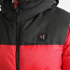 Remise 👏 Doudoune Chauffante Capuche Megeve Premium Rouge Noir de Comme Des Loups 💯