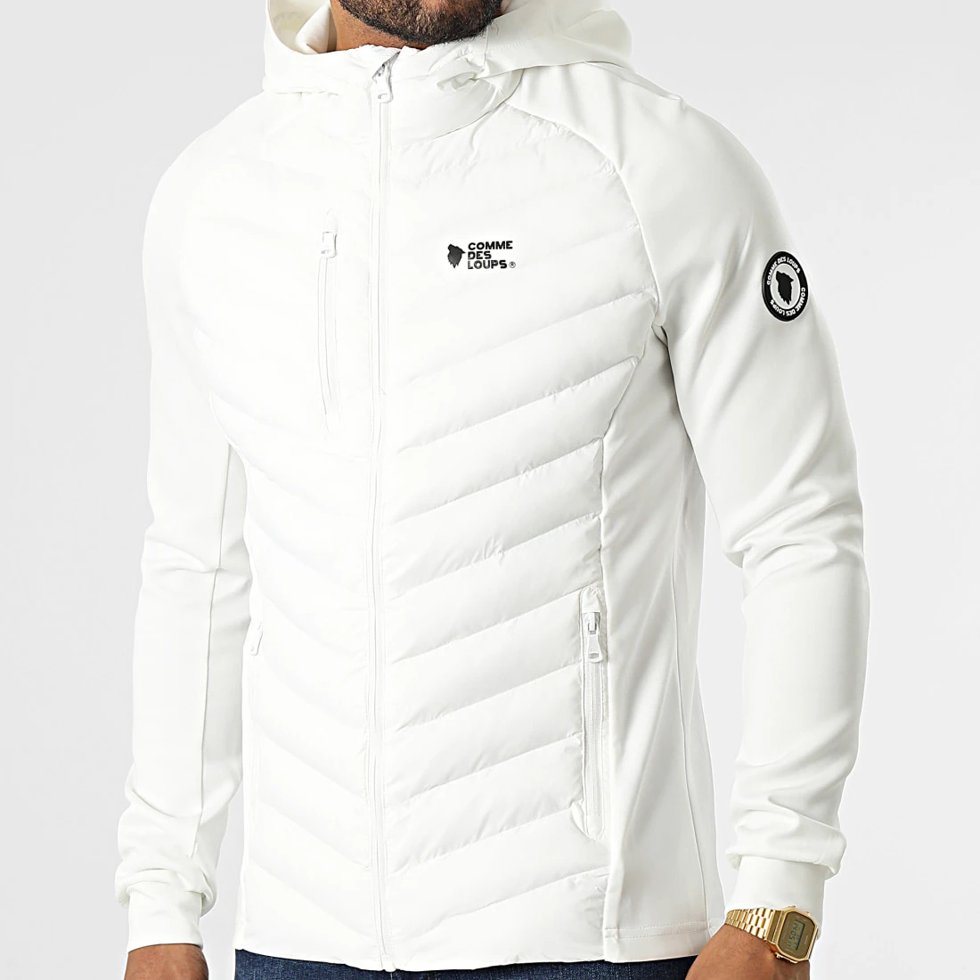 • Veste zippée capuche avec empiècements matelassés et rembourrés type doudoune