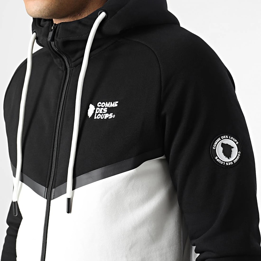 • Ensemble sweat zippé capuche et pantalon jogging bicolore avec visuel Comme Des Loups brodé