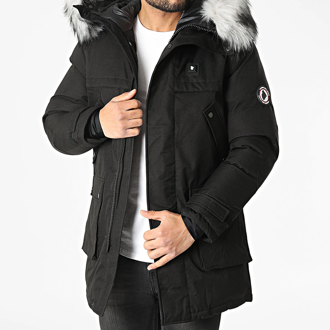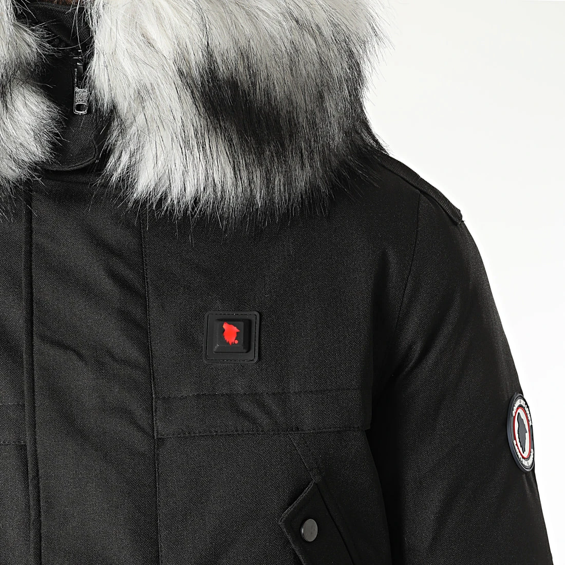 • Parka chauffante avec capuche et fourrure synthétique amovible