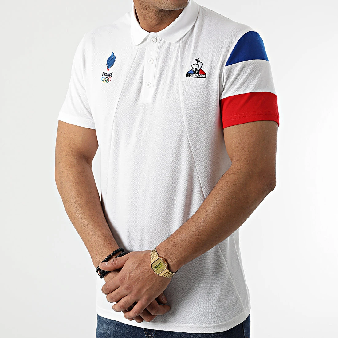 • Polo à manches courtes avec patchs Equipe de France Olympique et Le Coq Sportif brodés